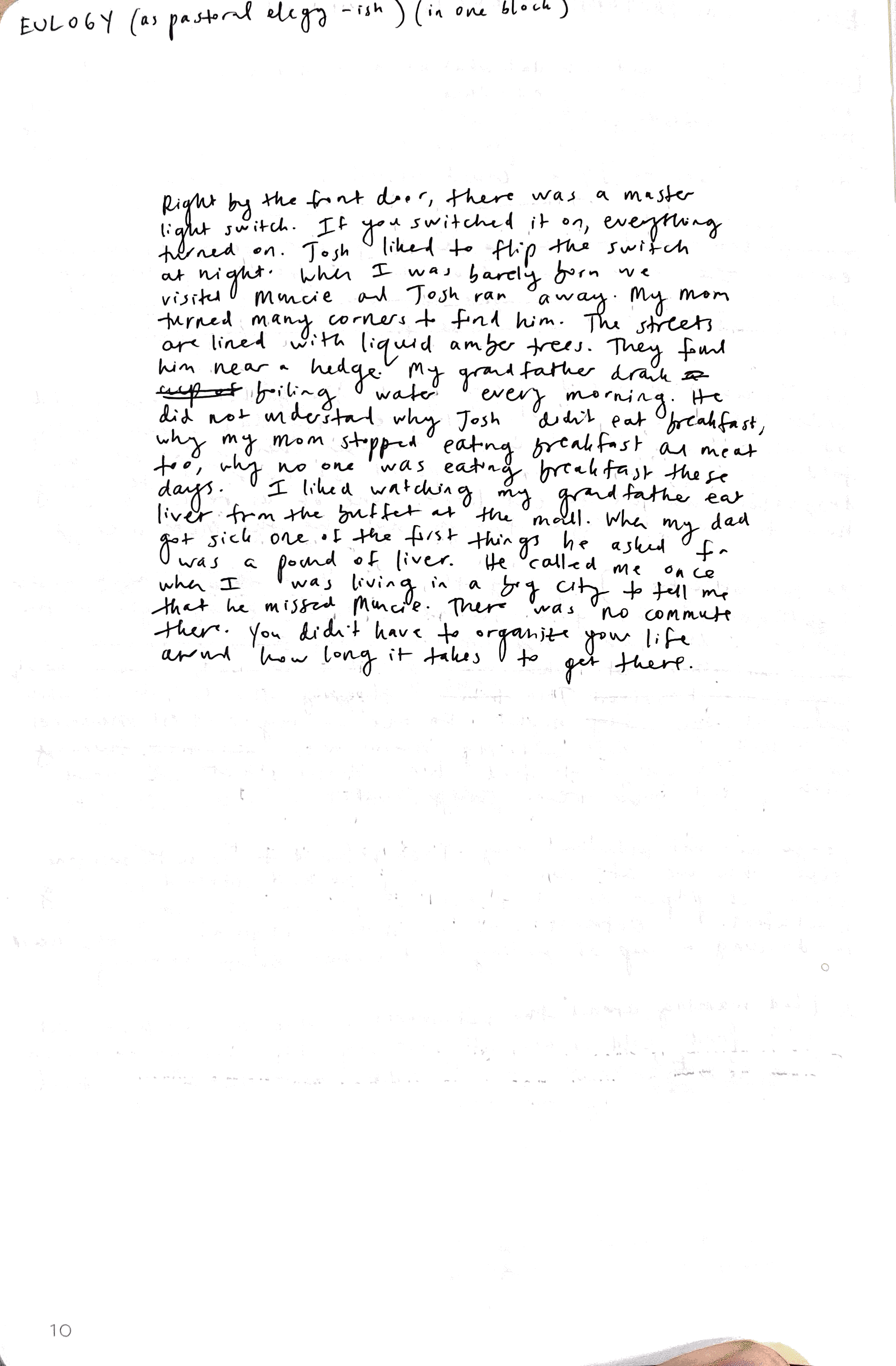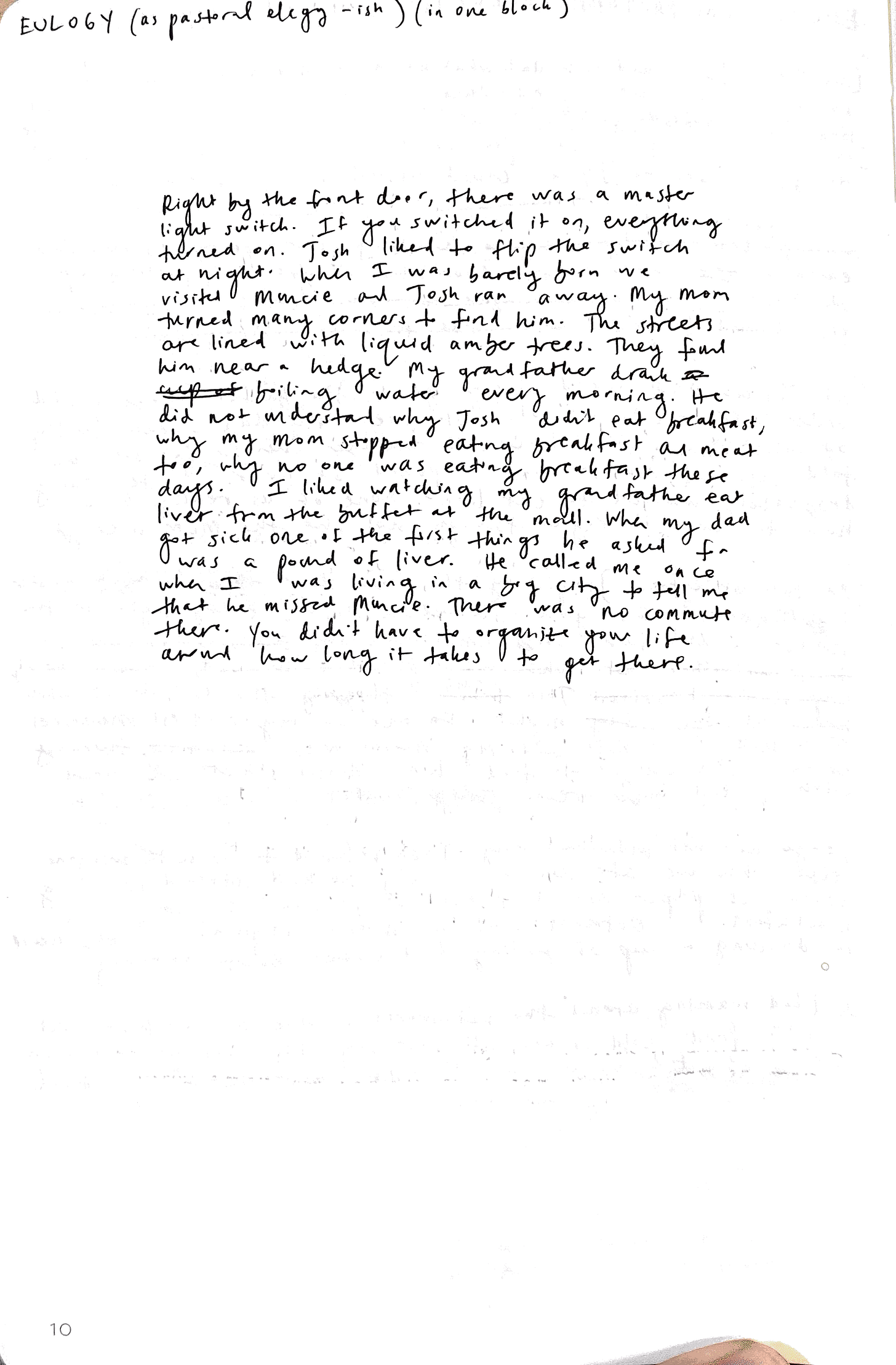 I decided that because the eulogy is ultimately a form of public writing, one of the most immediate and ubiquitous forms in fact, I would motivate myself to finish writing it by addressing this (semi) public audience here and dwelling in the writing process a little.